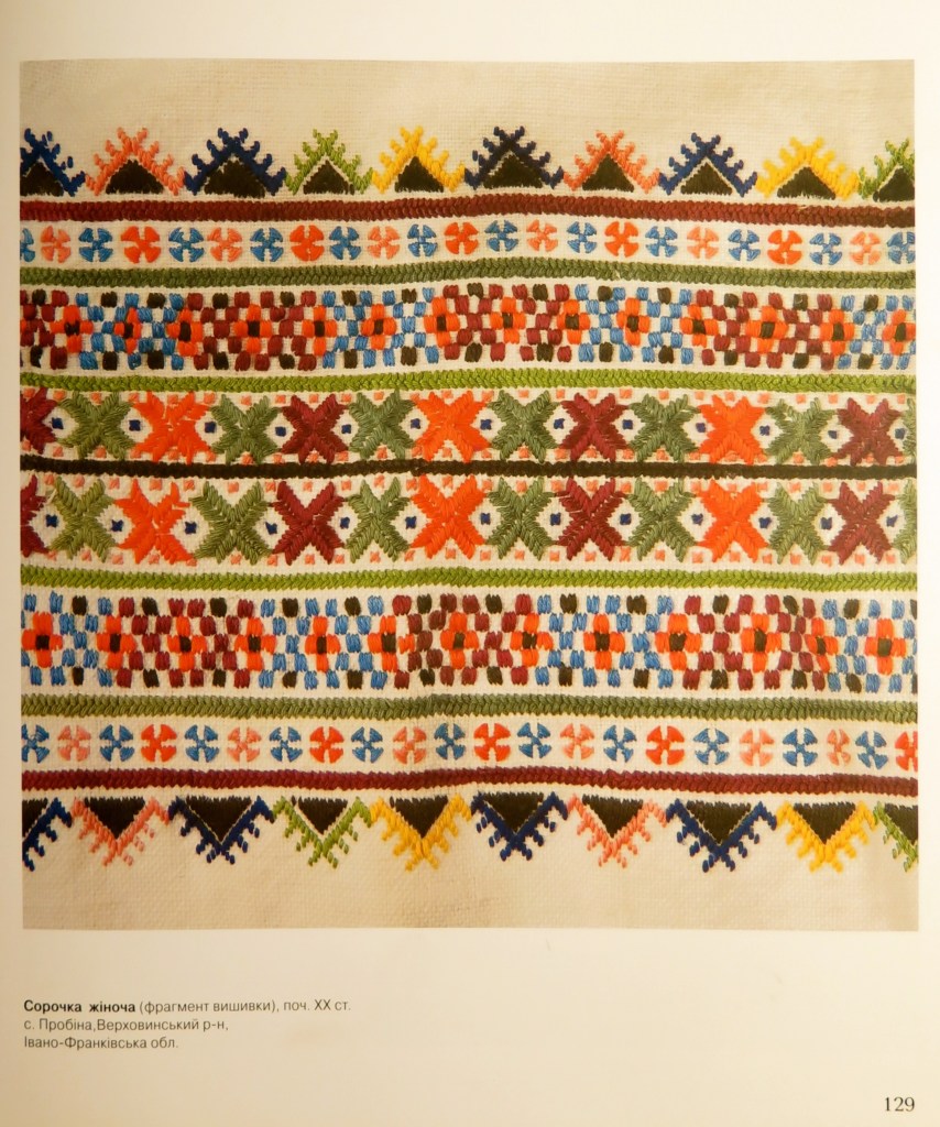 It’s not the first time I have embroidered this design. You may recognize it from the Easter servetka that I embroidered a couple of years ago EASTER SERVETKA. It decorates the sleeves of a woman’s shirt from the village of Probina, Verkhovyna district, Ivano-Frankivsk region, which is located in the museum of folk art of the Hutsul and Pokuttia regions, named after J. Kobrynskyi https://hutsul.museum. And the image of the sleeve is in the luxurious album INSPIRATIONS from the publishing house Rodovid https://rodovid.net/en/.