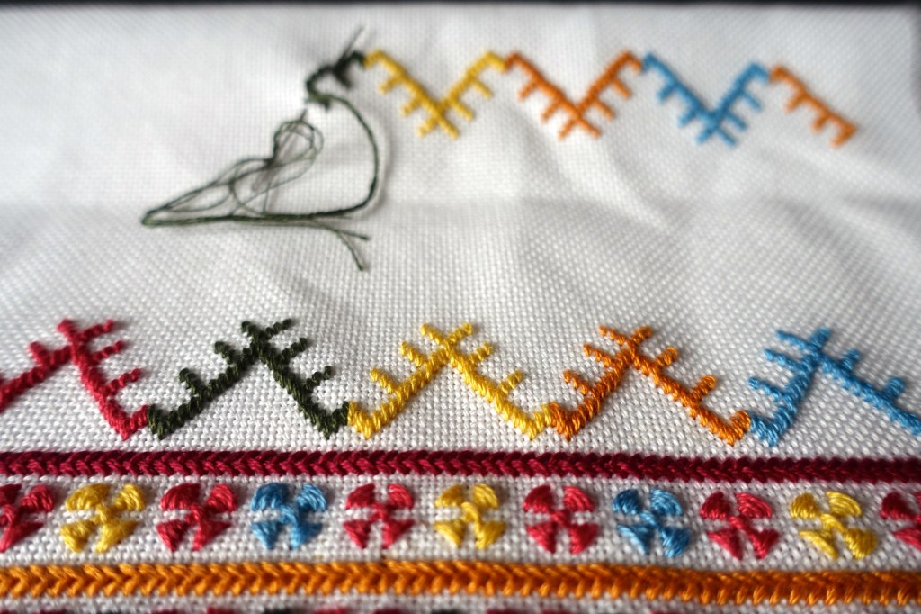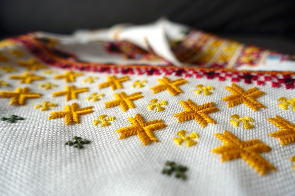 I love this design so much and due to its Hutsul origins and its decorating a woman’s shirt, I started calling it Hutsulka Ksenia.