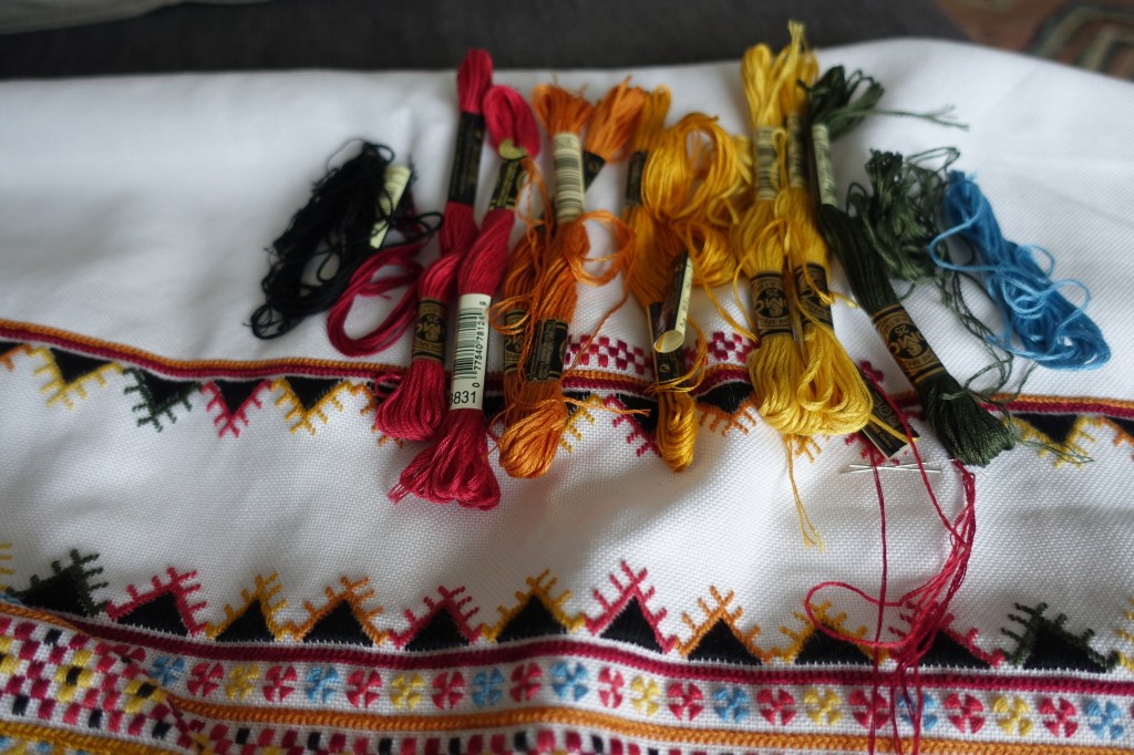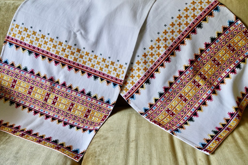 Hello, my dear friends! The Resistance Rooster and I have the honour to present to you a newly completed embroidery project: Hutsulka Ksenia in the Sunrise, a.k.a Sunrise Rushnyk.